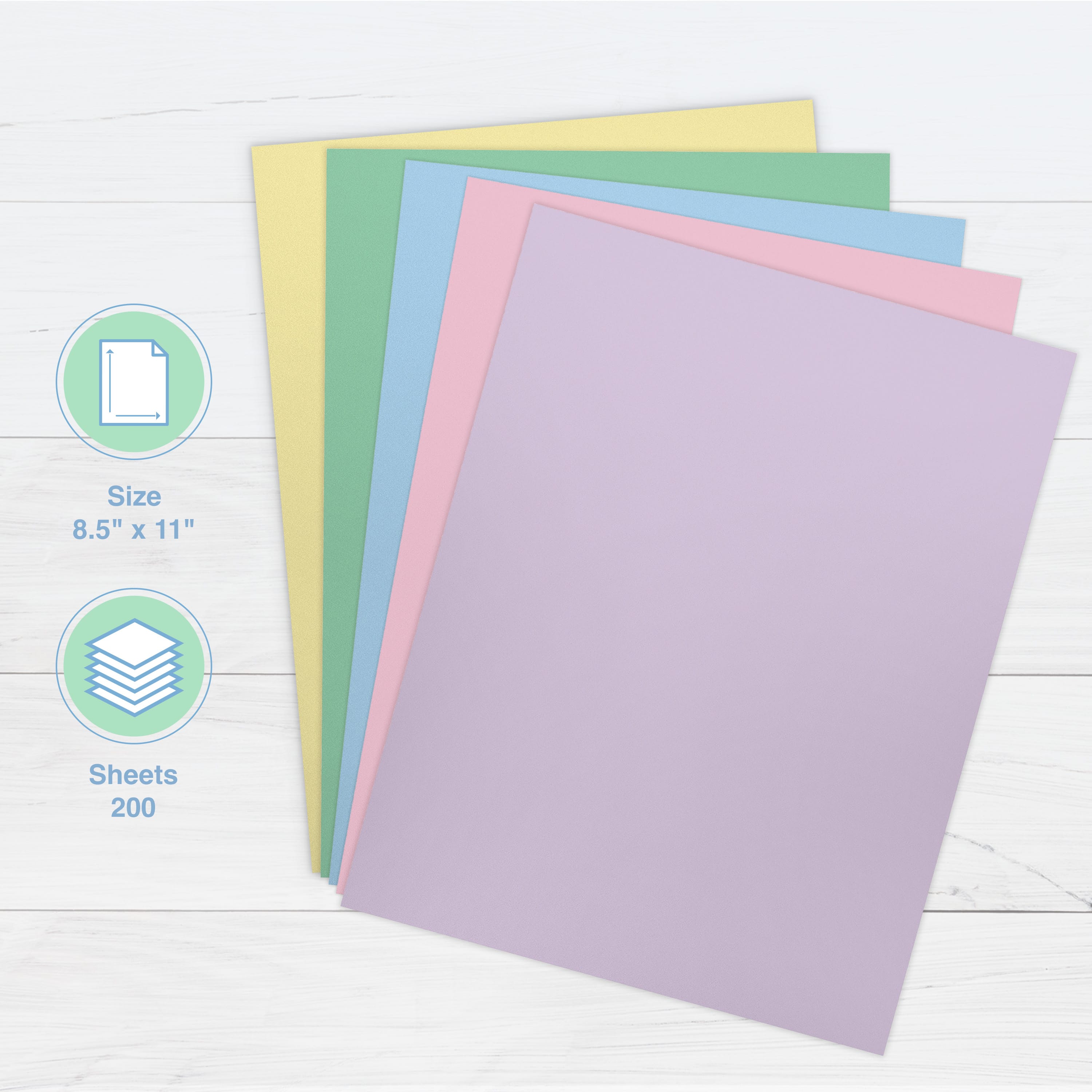 - Each pack of 8.5″ x 11″ colored cardstock includes five colors: mint, buttercream, pink, baby blue, and white