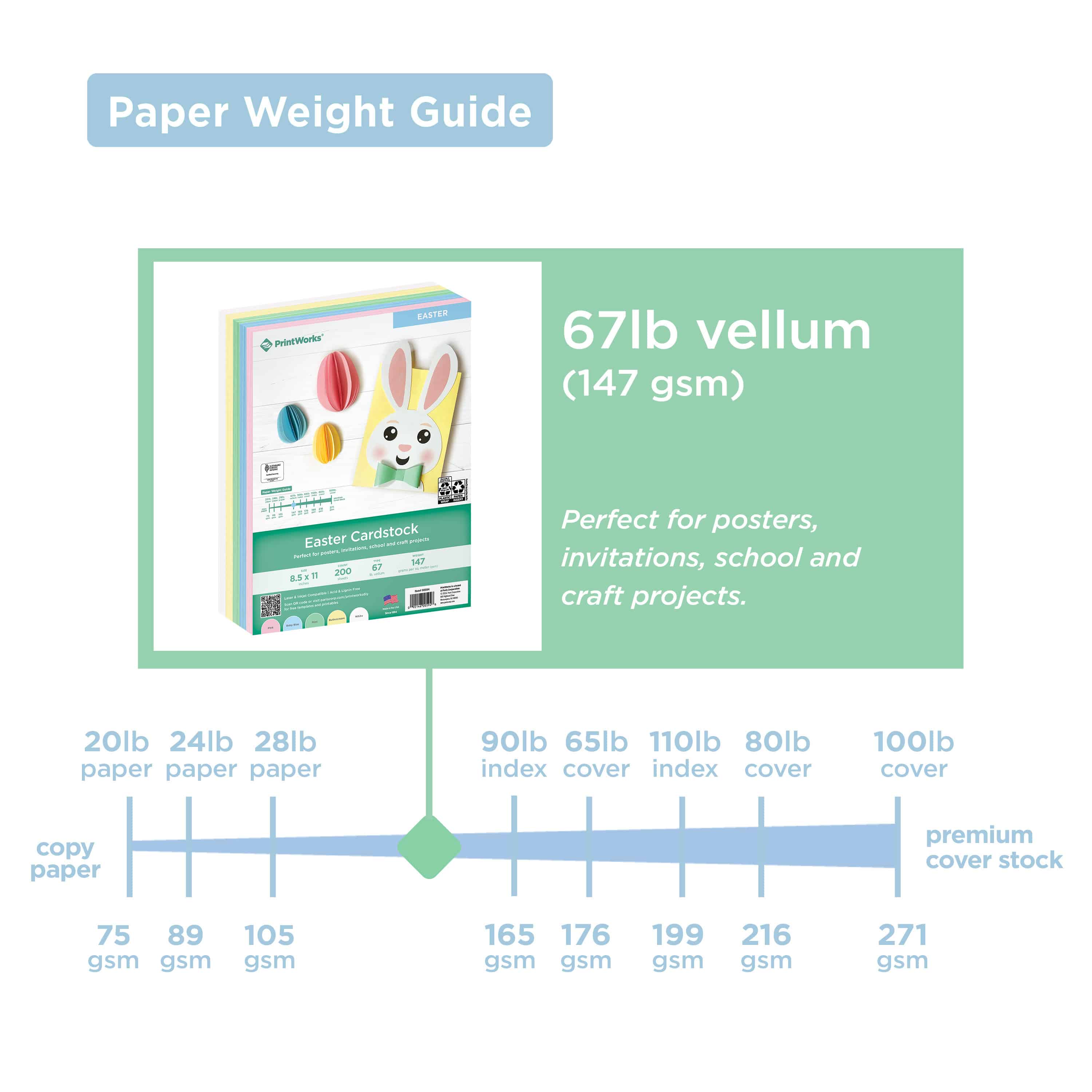Printworks Easter Cardstock is great for creating eye-catching flyers, signs, cards, school and craft projects. The soft pastel colors along with its heavyweight construction makes it perfect for not only printing but also crafting (DIY Easter gifts, cards, posters and creative seasonal craft projects) presentations and holiday projects. Whatever you are creating you will fall in love with these colors! All PrintWorks color paper is solid dyed core all the way through for cutting, tearing and folding. Have fun creating sellable or just-for-fun paper crafts with this paper pack. With PrintWorks Easter Cardstock you can create and print high impact flyers, signs, school and craft projects and more.