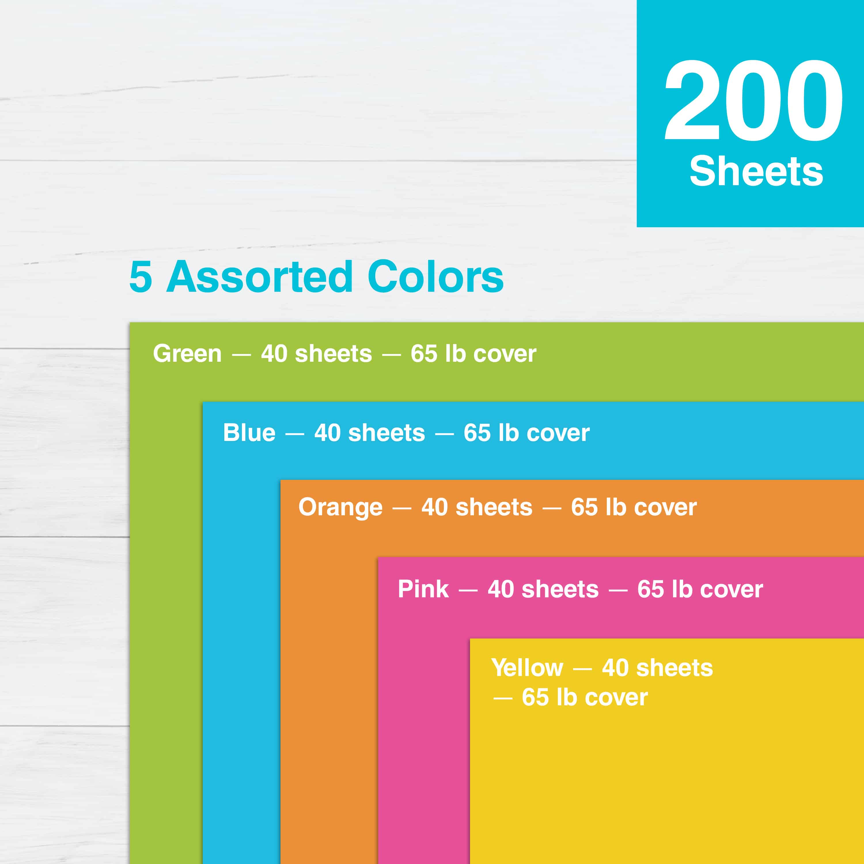 - Each pack of 8.5″ x 11″ colored cardstock includes 10 sheets of each neon color: yellow, blue, green, pink and orange