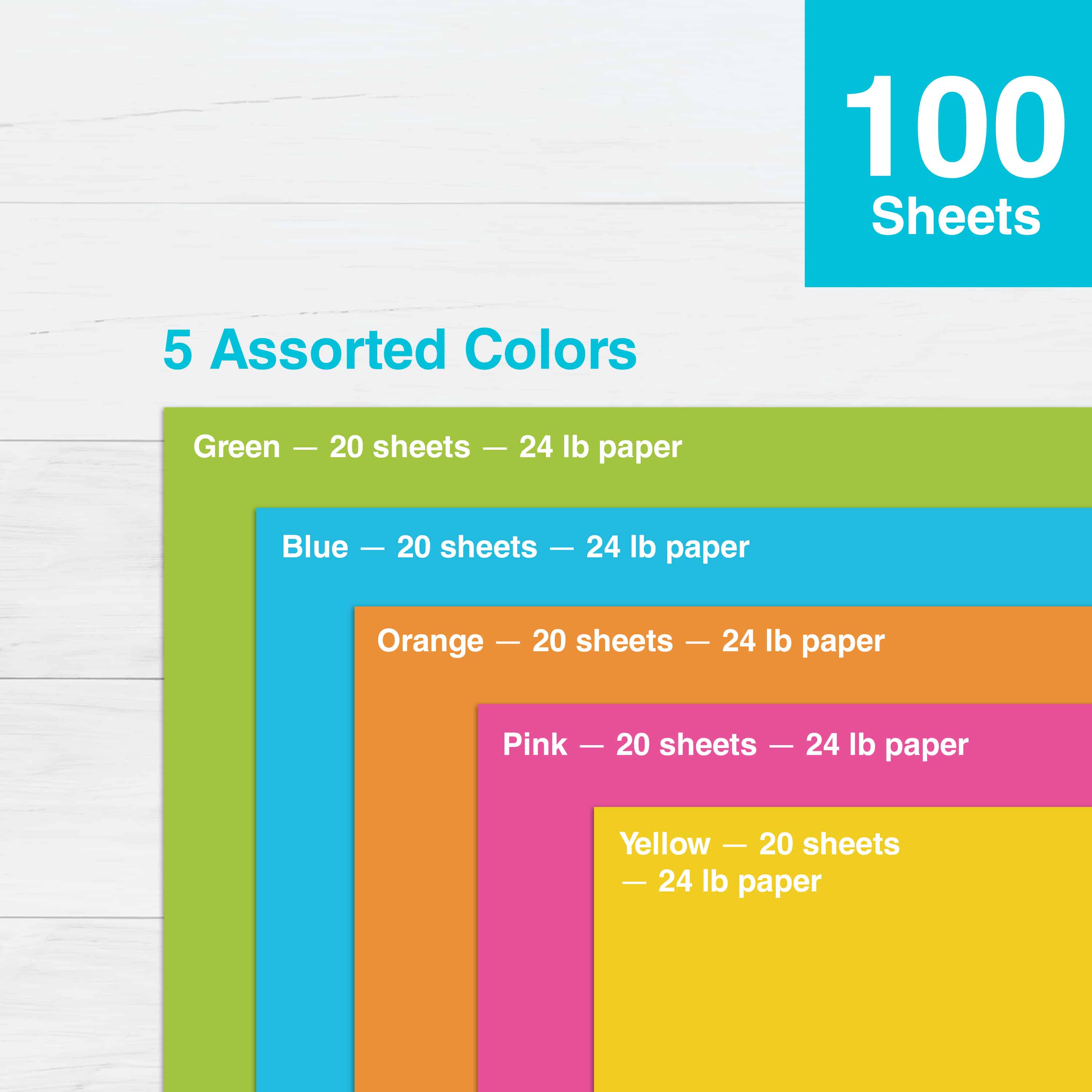 - Each pack of 8.5″ x 11″ color printer paper includes 25 sheets of each neon color: yellow, blue, green, pink and orange